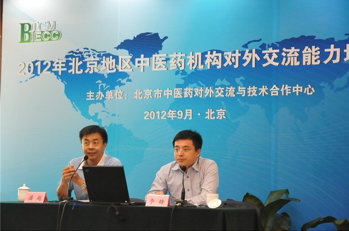 为进一步提高北京中医药企事业单位对外交流能力,提升京交会中医药专题参展水平, 2012年9月13日、14日北京市中医药对外交流与技术合作中心举办了对外交流能力培训班,在京的17家中医药机构中30名外事、对外宣传干部参加了培训。