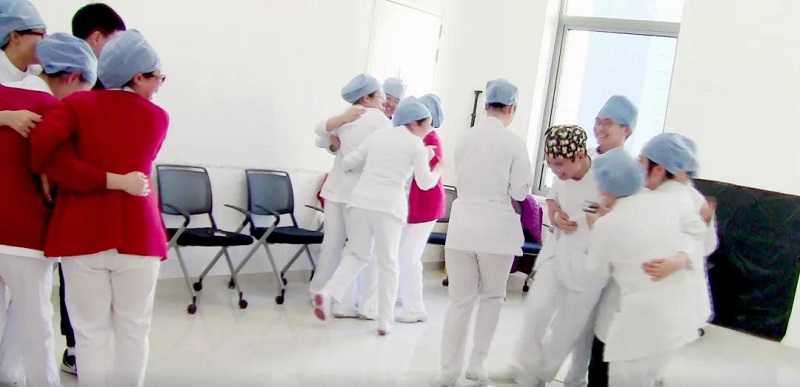 活动首先从心理小组的成员和新职工的自我介绍开始,大家相互认真倾听、关注彼此,通过简短的话语拉近了彼此间的距离。“找呀找呀,找朋友,找到一个好朋友……”一首儿歌把我们带进了无忧无虑的童年,大家在心理小组老师、外科护士长汪莲的带领下开展了找朋友、拍拍手、自由冥想等游戏,气氛渐渐融洽热烈,最终变得和谐而动人。