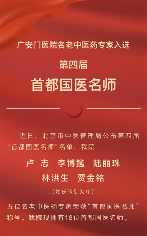 广安门医院5位名老中医药专家入选第四届首都国医名师