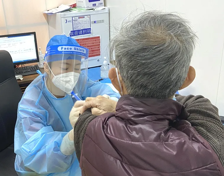 2021年3月15日,我随广安门医院新冠疫苗接种队赴顺义开展疫苗接种工作。到了接种点,大家立刻更换衣服,穿戴整齐进入注射台位,核对不同批次疫苗,做好准备工作。看着人群熙攘的等候大厅,大家急在心里,护士姐妹们不喝水不上厕所,一干就是连续4、5个小时。每一次的注射都需要核对接种知情同意书、身份证、疫苗厂家、疫苗批号、注射部位,扫描标记疫苗,抽吸药液,注射,标注时间,叮嘱接种后的注意事项。每一次的注射都需要在注射椅上多次转身,一个小时下来,护士姐妹们已经腰酸背痛了。再带着防护口罩和面屏,每说一句话都是经过声嘶力竭后才发出的声音,说话过多时大家会觉得胸闷、耳鸣、头晕,即便这样注射护士一直在耐心的为前来接种的市民进行讲解。我为是广安门医院这个大家庭中的一员感到骄傲,我为能够承担疫苗接种工作而感到自豪。在应国家之招,保首都平安,共筑首都免疫长城的路上,广医护理人一直在努力前行。