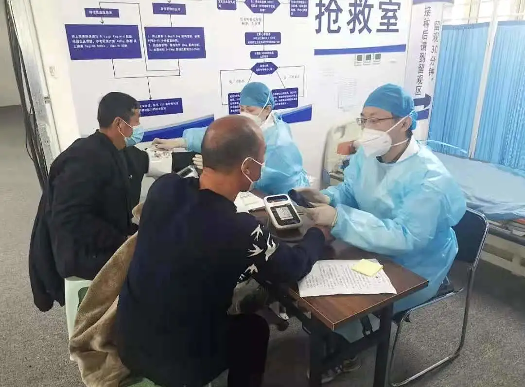 为解决群众对于新冠疫苗接种安全性的担忧,进一步确保接种过程安全平稳有序进行,我院紧急组建了现场急救保障小组,由急诊科主任齐文升,副主任赵昕、于大兴和主治医生杨金亮共同参与。急救保障小组提前制定好常规工作流程、完善急救处理应急预案。为确保万无一失,急救保障小组的医生们每日接种开始前清点急救用品,检测急救设备,演练急救流程。接种开始后保证每30分钟至少一次现场巡查,确保不良事件的早发现、早处理。每晚接种结束后再次清点检测急救用品及设备。成员们克服了接种任务集中,天气恶劣,设备有限等困难,圆满高效地完成了各项医疗保障任务。