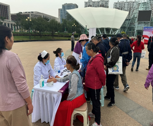 医生护士们为陆续赶到现场的居民们提供健康咨询及义诊服务,通过详细询问病情,针对患者们的健康问题给予耐心解答,从预防保健、药食、非药物疗法等多方面指导患者健康保健。