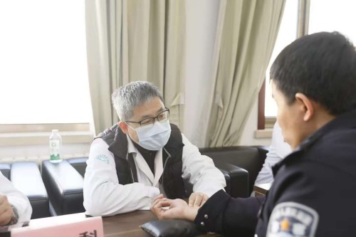基层民警肩负着辖区治安防控、应急处置、服务群众等多项重任,他们由于长期处于高强度工作状态、作息不规律,健康隐患和问题较为突出,但日常就医时间难以保障。义诊团队的到来受到了派出所民警们的热烈欢迎。在活动现场,医护志愿者给民警们量血压、测血糖,耐心询问日常作息、饮食习惯及用药情况,结合职业特性指导日常生活调整。在中医内科义诊区,医师志愿者通过望闻问切,细致了解民警身体状况,重点针对民警常见的失眠多梦、疲劳乏力、消化不良、肩颈酸痛等问题,逐一分析病因,量身定制生活调整和药物干预方案,同时现场示范简单易操作的穴位按摩方法,方便民警在工作间隙随时进行保健。此外,志愿者们还向现场民警发放健康宣传手册,引导民警重视身心健康,养成良好的生活习惯。