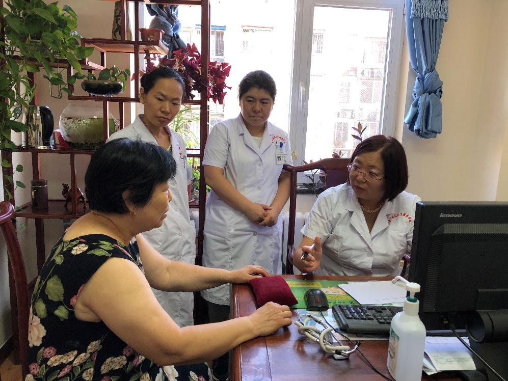 座谈会后,郭蓉娟副院长亲临中医特色门诊,接诊病人,带教青年医师,为社区患者带来一对一的诊疗服务,耐心听取患者诉求,对证诊治,并给予详细的诊疗意见。