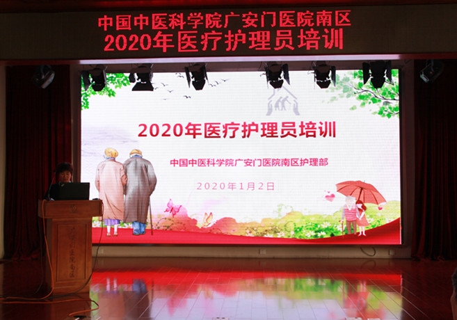 2020年1月2日下午,在院领导大力支持下,广安门医院南区护理部举办“2020年医疗护理员培训”。副院长张锐文、护理部主任刘素珀、北京亿展资产管理有限公司和腾顺诚爱心陪护中心的员工50余人参加此次培训。