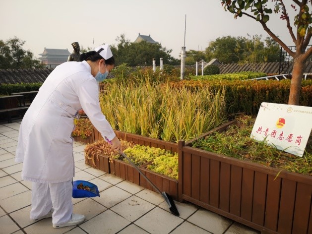 2020年10月31日,北京市鼓楼中医医院开展"清洁家园 人人参与 健康环境 人人共建"全院周末卫生大扫除活动,全院63名职工响应号召,放弃周末休息,进行大扫除,为美化院区环境献策献力。