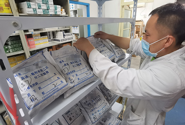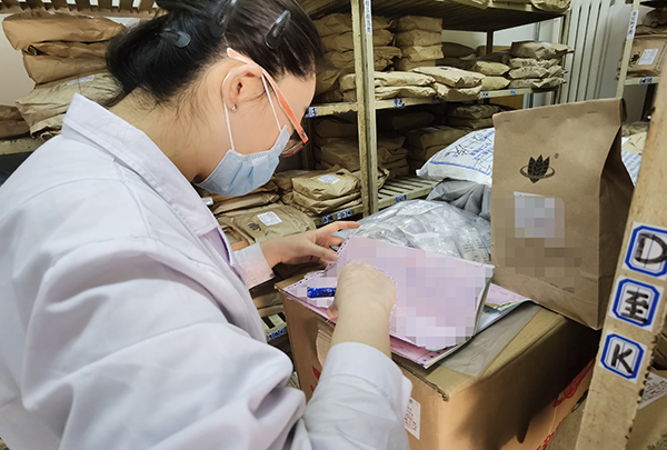 为了方便患者及时得到调配好的方剂,广外医院中药房多措并举,积极为患者服务。首先加大饮片采购量,保证药品供应。药房调整采购计划,按照需求增加要货频次,加大了黄芪、丹参、当归、川芎等一系列补气活血药的购进量;遇到急需某种药物时会让厂家进行闪送,保证患者第一时间正常用药。同时为严格保证药品质量,始终保持药品专人验收,验收合格才准许入库。
