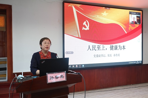 6月23日下午,北京中医药大学房山医院党委副书记、院长孙鲁英以"人民至上,健康为本""人文医院建设"为题讲党课,医院领导班子成员、科室负责人、党支部书记、支委、党员、团员青年代表等200余人参加学习,由党委书记郭书文主持,活动以线上线下的形式进行。