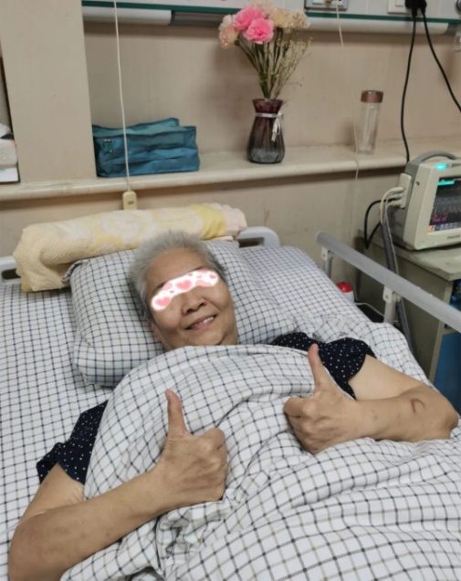为进一步提高患者生存质量,肿瘤科开通绿色通道,与北京大学肿瘤医院取得联系,对蒋女士进行外院会诊。会诊当天,医护人员全程陪护、悉心照料,救护车高效转运,在大家的共同努力下,顺利完成了院外会诊,为患者明确了后续治疗方向。患者及家属对肿瘤科全体医护人员表达了诚挚的感谢,“特别感谢所有的医护人员,真的谢谢!”蒋女士握着医生的手感激地说。