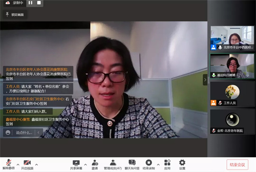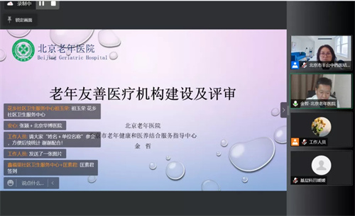 为响应国家卫生健康委《关于开展建设老年友善医疗机构工作的通知》的要求,贯彻落实北京市卫生健康委《关于开展2021年老年友善医疗机构建设工作的通知》相关要求,11月30日,北京市丰台中西医结合医院举办丰台区老年友善医疗机构创建及线上评价验收线上培训会。本次会议由北京市丰台区卫生健康委员会主办,北京市丰台中西医结合医院承办。北京市丰台区卫生健康委基层卫生健康科科长吕媛媛、北京老年医院主任医师宋跃涛、金哲,北京市丰台区老年健康和医养结合中心、北京市丰台区老龄事业发展中心、北京市丰台区社管中心,以及北京市丰台区十余家医疗机构和养老机构相关人员参会。会议由北京市丰台中西医结合医院老年科主任熊盈主持。