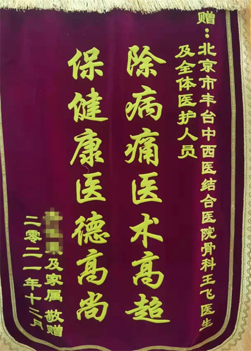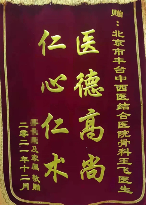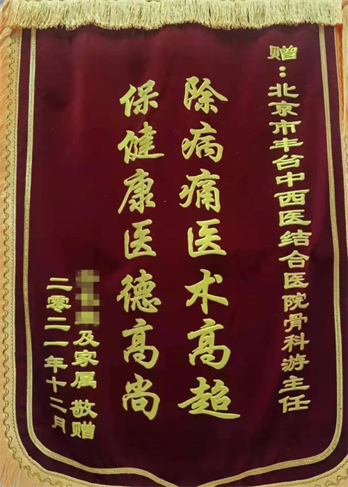 近日,已康复出院的85岁患者齐大爷在家属的陪同下,专程将三面锦旗,送至北京市丰台中西医结合医院骨伤科,表达对游浩主任及骨伤科团队的感激之情。