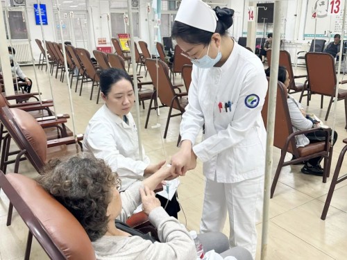 在输液期间,患者服务中心工作人员持续陪伴患者,直至其家属赶到。她们详细向家属说明病情后,才放心离开。