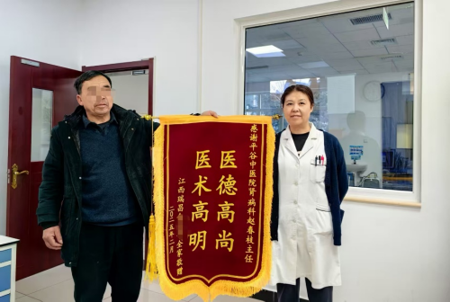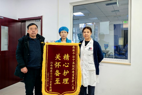 近日,患者余女士的家人把两面锦旗送到了北京市平谷区中医医院透析室医护人员手里,一面印着“医术高明,医德高尚”;一面印着“关心备至,精心护理”的锦旗。这两面锦旗承载着透析患者及家属的信任和满满的感激,不仅是对透析室医护团队专业能力的肯定,更是对医患同心共抗病魔的生动诠释。