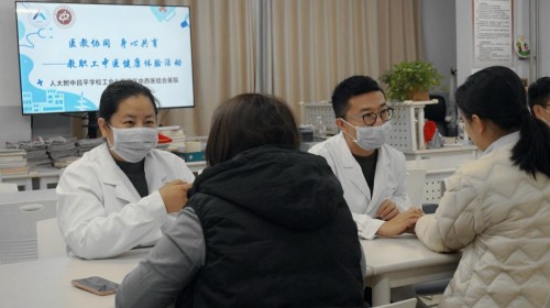 为切实提升教职工脑健康水平,积极推动中医药事业高质量发展,近日,我院与人大附中工会携手举办“医教协同,身心共育”教职工中医健康体验活动。心身医学科副主任医师尹霞 、主治医师包思 、王耀立组成专业团队,为学校教职工带来一场兼具专业性与实用性的中医健康服务,获得参与教职工的一致好评。
