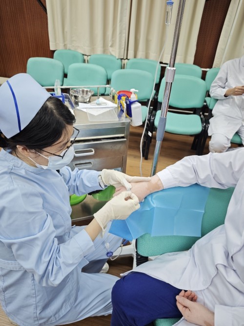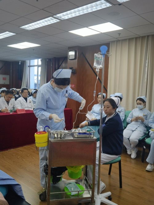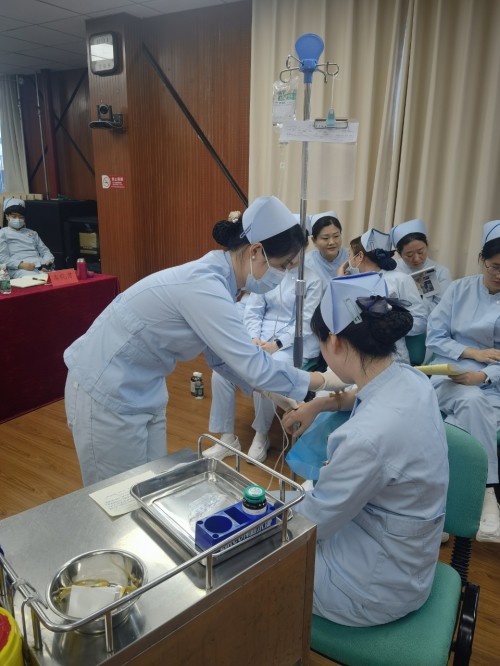 竞赛现场既有经验丰富的护理前辈,也有崭露头角的新生力量,热烈亮眼的氛围尽显团队活力。尤为值得肯定的是,护士长们主动作为静脉输液操作对象,生动传递出技术与信任的连接、甘于奉献的职业精神、薪火相传的护理爱心。同时,选手们展现的刮痧、艾灸中医技能,充分彰显了我院中西医结合的特色优势,也印证了中医护理技术在门诊及各病区的广泛应用,期待大家继续传承中医护理精髓并发扬光大。