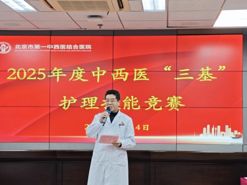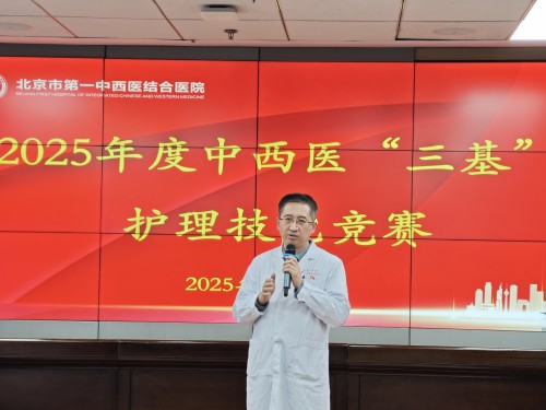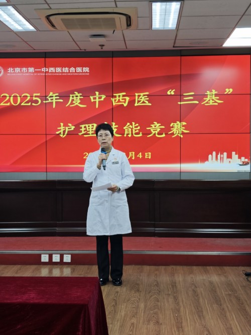 主管领导娄晓君讲话:首先对本次竞赛的圆满举办表示热烈祝贺,对全体参赛选手的精彩表现、评委的专业性以及工作人员的辛勤付出给予高度肯定。护理工作是医疗服务体系中不可或缺的重要组成部分,中医特色护理技术的发展更是我院特色与优势所在。参赛选手们既展现了西医护理的精准规范,又彰显了中医护理的独特优势;此次竞赛切实推动了全院中西医护理服务水平的同质化、高质量提升。