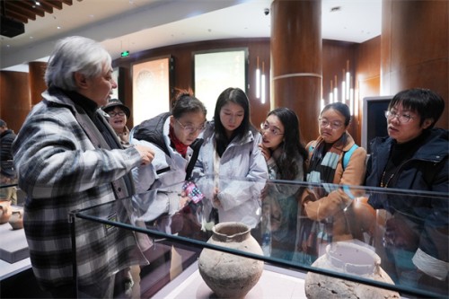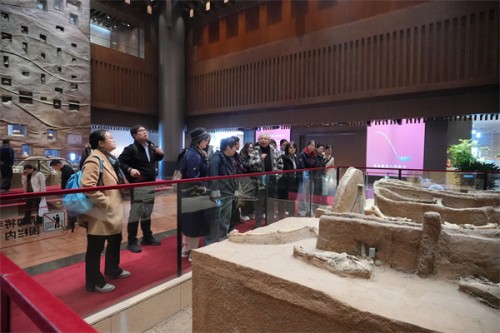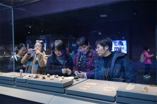 上午10时,会员们在中国考古博物馆开启深度探源。从汉代竹简到经脉漆人,从外科手术器械到汉代青铜盆“医工”铭文,文物实证让千年医道基因焕发新生。活动采用“集中导览+自由拍摄+互动研讨”模式:张迟老师及其助手曹鑫老师解析文物背后的文明密码后,会员们以3-5人小组为单位,在“阴阳平衡”纹饰青铜器、“天人合一”理念玉器等展柜前驻足讨论,每人完成至少3张任务照片拍摄,小组共同筛选最具创作价值的素材,为后续创作奠定基础。