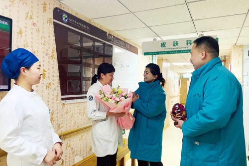 1月21日,北京市丰台中西医结合医院内温情涌动,一场荣退走访慰问温暖开启。医院党委书记彭飞,党委副书记、纪委书记、工会主席许鑫带领工会工作人员,先后前往皮肤科、体检中心,与科室负责人及职工们齐聚一堂,共同慰问1月份即将光荣退休职工,为他们送去诚挚的关怀与美好的祝福。