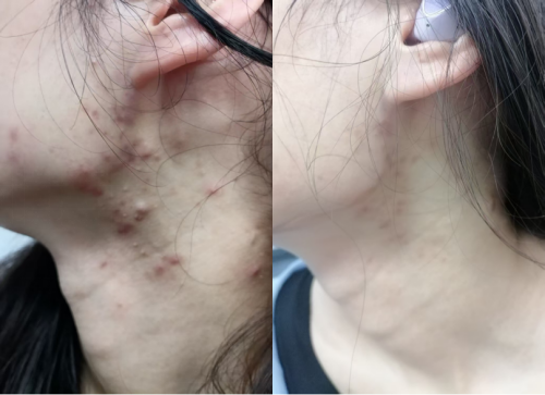 (一位月经紊乱伴发痤疮的患者,经系统调理月经后,面部痤疮明显改善,重拾素颜自信)