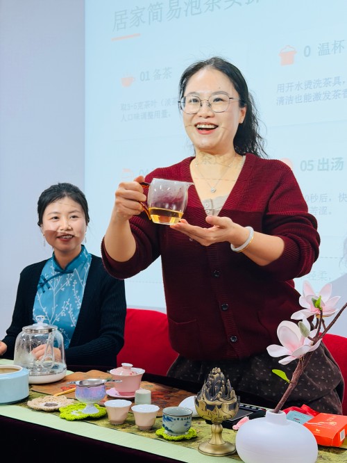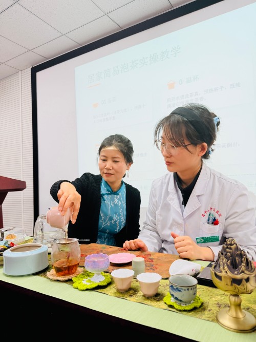在申时茶专题课堂环节,脾胃病科护士长、中级评茶员姚海英围绕申时饮茶养脾胃的传统智慧,讲解茶类选择、冲泡水温、出汤节奏等知识,并手把手指导冲泡实操。职工们亲手泡茶、静心品鉴,在茶香中感受传统文化魅力,以茶养胃、以茶静心。