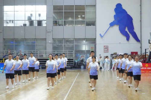 作为昌平区卫生健康系统选派的参赛队伍,北京中医药大学附属昌平医院光荣承担了代表区卫健委出战的任务。接到参赛通知后,医院党委和工会高度重视,在区卫健委工会的大力支持和悉心指导下,迅速行动、周密安排。医院工会主席田小飞同志亲自挂帅、靠前指挥,从全院医务人员中精心遴选24名政治素质过硬、业务能力突出、身体条件优秀的骨干力量组成参赛队伍,并多次召开动员部署会,明确训练目标、细化责任分工、强化后勤保障,为备赛工作奠定了坚实基础。为确保训练质量,医院工会积极协调外部优质资源,特邀昌平一中资深体育教师刘老师担任主教练。刘老师凭借丰富的教学经验和专业的训练方法,针对医务人员工作繁忙、时间碎片化的特点,科学制定训练计划,从动作分解、节奏把握整体配合,逐一精雕细琢。全体参赛队员克服临床一线工作任务繁重、倒班作息不规律等实际困难,主动牺牲休息时间,利用午休、下班后等时段,坚持高强度、系统性集训长达一个月。训练场上,大家挥洒汗水、互帮互学、反复磨合,充分发扬了不怕苦、不怕累的拼搏精神和精益求精的严谨态度。