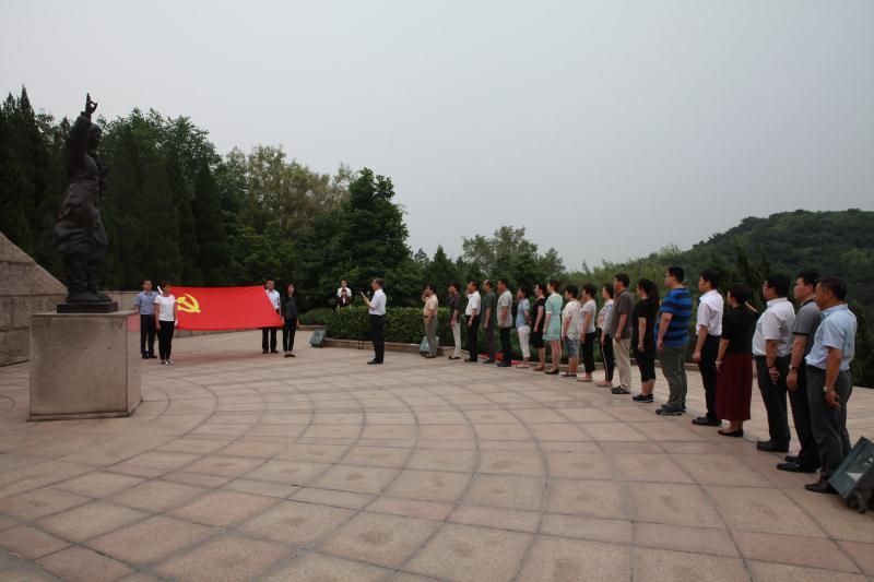 为深入学习贯彻党的十九大精神,继承和发扬革命先辈的光荣传统,积极落实全面从严治党要求,在中国共产党成立97周年之际,北京市中医管理局于6月25日组织全所党员和群众在卫生计生委党校救死扶伤纪念坛前,举行“新党员入党宣誓,老党员重温誓词”主题党日活动。 活动仪式庄严而神圣,首先由党校教员介绍救死扶伤纪念坛设立的由来,全体人员向在2003年抗击非典献身在9名医务工作者默哀致敬,而后在主体青铜雕像前,面对着鲜红的党旗,全体党员举起右手、紧握拳头,庄严宣誓,重温入党誓词时的庄严承诺和坚定决心,在党旗下接受心灵的净化和洗礼,牢记共产党员的政治责任和历史使命。
