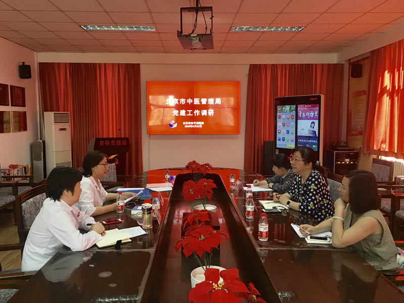 2019年5月23日下午,北京市中医行业基层党建工作课题组北京中医药大学马克思主义学院院长王梅红、魏鹤博士到北京市和平里医院进行党建调研,院党委书记刘东、副书记侯波陪同调研。