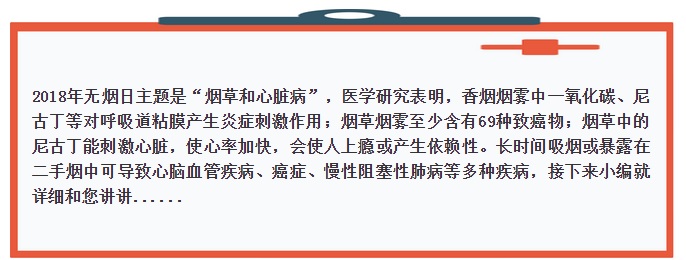 心血管疾病:吸烟与冠心病、高血压、猝死、血栓闭塞性脉管炎的发病有关,吸烟促使血液形成凝块和降低人体对心脏病先兆的感应能力。