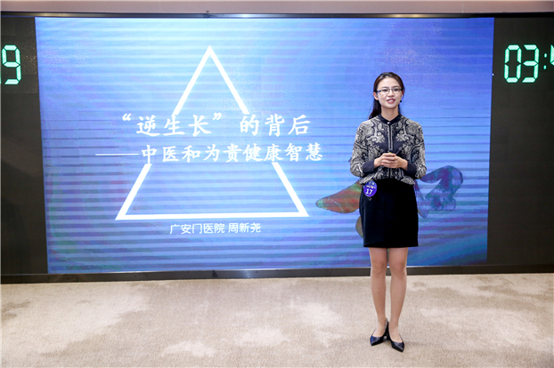 大赛设置自主命题讲解、随机命题讲解等环节。广安门医院选手、风湿病科主治医师周新尧以《“逆生长”的背后——中医和为贵健康智慧》为题进行科普演讲,她通过一例类风湿关节炎血管炎的中医药治疗病例,引出获得“逆生长”的关键是深刻领会中医药神奇疗效背后的辨证论治机理,并将中医阴阳调和的智慧运用到生活之中。周新尧在随机问答环节中也出色地讲解了“蜘蛛与网”的故事。