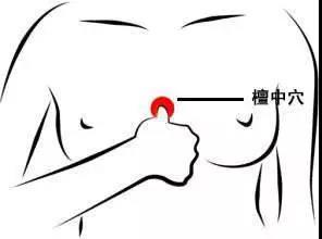 位于两乳头连线之中点,具有调畅胸中气机、宽胸利膈、宁心安神、消除烦闷的作用。按摩时,用大拇指腹稍用力揉压穴位,每次揉压五秒,休息三秒。生气时往下捋一百下,可以顺气,对岔气胸闷痛也有很好的改善作用。同时,妇女经常按揉膻中穴,可以促进泌乳激素的分泌,改善乳房发育不良及产后乳汁不足的情况。