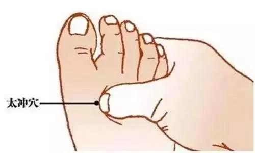 位于第一与第二趾之趾蹼处向上,跖骨底结合部前方取凹陷处,本穴具有平肝理血通络之功效。按摩太冲穴对爱发脾气和忧郁的人,都有很好的缓解作用,尤其对高血压、头痛、眩晕、失眠、乳房胀痛、月经不调、肝病具有良好的改善效果,同时也可以增进肝脏之机能。