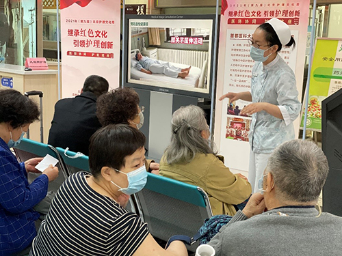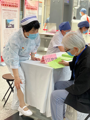 针灸科高原护士进行了《VTE预防的健康宣教》专题讲座,图文并茂地向患者解释了什么是VTE、VTE的危害并演示了预防VTE的踝泵运动等;VTE防治专业学组负责人、普外科护士长徐国丽为患者提供一对一咨询,并提供居家防治健康建议;医务处梁琳医生为患者提供诊疗建议与参考。