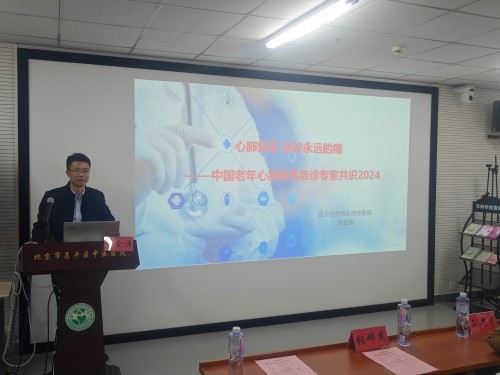 随后,会议进入了学术专题讲座环节。首先,由张碎虎主任带来了题为“室性心律失常的急诊识别与处置”的讲座。张教授结合丰富的临床经验和最新的研究成果,深入浅出地讲解了室性心律失常的识别方法、处置原则及注意事项,为参会者提供了宝贵的临床指导。紧接着,昌平区中西医结合医院急诊科刘金涛主任为大家解读了“中国老年心肺复苏急诊专家共识2024”。刘教授详细介绍了老年人心肺复苏的特殊性、挑战及应对策略,强调了团队协作、早期识别与干预的重要性,为急诊医学工作者在处理老年心肺复苏病例时提供了科学依据。随后,昌平区医院急诊科王博主任带来了题为“创伤的急诊救治”的讲座。他围绕创伤的急诊评估、初步处理、转运及后续治疗等方面进行了全面讲解,强调了急诊救治中时间紧迫性和团队协作的重要性,为参会者提供了实用的救治技巧和思路。