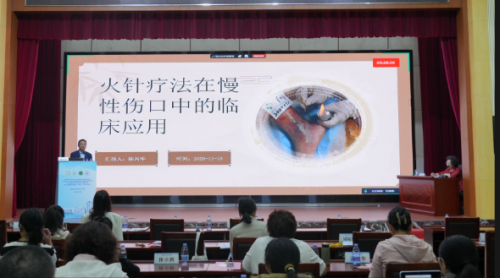 广州中医药大学一附院陈兴华主任医师以《火针疗法在慢性伤口中的临床应用》为题,从火针“三破、三立”作用入手,结合个人经验介绍了火针治疗各种疾病的临床应用,深入讲解了火针治疗慢性伤口以及相关皮肤疾病的操作细节和要领。
