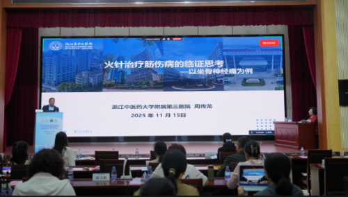 浙江中医药大学附属第三医院周传龙副主任医师讲授了《火针治疗筋伤病的临证思考——以坐骨神经痛为例》从病机、诊断等方面提出了对于筋伤病的创新性思考,又结合病例分享了火针在治疗坐骨神经痛中的应用价值。