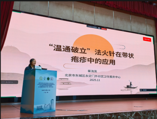 北京市东城区永定门外社区卫生服务中心蔡海英副主任医师围绕《“温通破立”法火针在带状疱疹中的应用》,从中医和现代医学理论角度阐释带状疱疹疾病概况和临床诊治方法,从个人临床实践经验出发,探索火针在带状疱疹治疗中的应用价值。