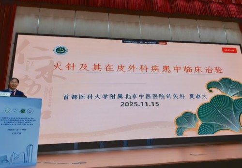 为充分发挥北京中医医院在火针领域的引领作用,并进一步推动火针技术的规范化应用与临床水平提升,11月14日-16日,由首都医科大学附属北京中医医院与中国针灸学会主办,中国针灸学会火针专业委员会、广州中医药大学第一附属医院、广州中医药大学、北京针灸学会承办的火针专业委员会2025年学术年会暨2025年国家级中医药继续教育项目“火针疗法治疗皮肤粘膜病的临床应用新进展学习班”在广东省广州市举办。共有来自全国15个省、直辖市的300余名临床工作者出席大会。开幕式由广州中医药大学第一附属医院针灸推拿康复中心副主任王澍欣主持。