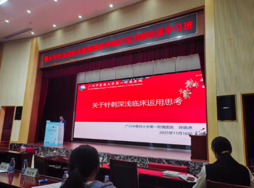 广州中医药大学第一附属医院陈振虎主任医师讲授了《关于针刺深浅临床应用思考》,引经据典,从内经原文引入讲解了疾病定位不同,针刺深浅和所选针具亦不同。此外还结合临床具体运用进行了详细分享,引起新思考。