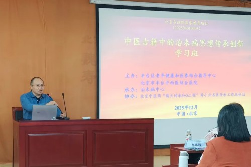 12月6日,由北京市丰台中西医结合医院承办的北京市继续医学教育项目——《中医古籍中的治未病思想传承创新学习班》,在医院多功能厅顺利开展。此次学习班凭借专业性与前瞻性,吸引百余名来自各级医疗机构的中医药专业技术人员踊跃参与,围绕中医“治未病”理论展开深度研讨,探寻其在当代医疗实践中的创新应用路径。