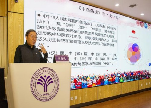 签约仪式圆满完成后,本次研修班的学术报告环节如期启幕。冯兴中教授以《人体科学视野下的中西医结合高质量创新思考》开篇,从人体科学的整体观和系统性出发,深刻阐释了中西医结合高质量创新的核心内涵与战略路径;北京中医药大学东直门医院杨晓晖教授在《人工智能助力中西医结合慢病管理—现状、实践与未来》报告中,通过现状分析与实践案例具体展示了数智工具赋能慢病管理的实践路径;复旦大学中西医结合研究院院长董竞成教授在《中国传统医学的哲学思考与科学基础》报告中,从哲学溯源与科学实证的双重维度,系统性解析了中医理论体系的内在逻辑与现代科学价值;清华大学玉泉医院贾育松教授在《筋骨同治・数智协同:中西医诊疗思维的同频与互鉴》报告中,分享了中医“筋骨并重”的整体观与现代数智化诊疗技术相融合辅助骨伤疾病的中西医联合诊疗经验。