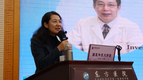 会议伊始,东方医院党委书记韩振蕴发表致辞。韩书记代表医院向陈德成教授表示最崇高的敬意和最诚挚的感谢!并希望全体参会同仁珍惜学习机会,深学细悟、学以致用,把特色技术转化为服务患者的临床实效。