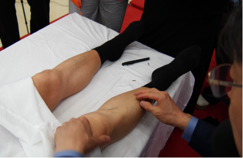现场实操演示环节是本次培训的重点环节。陈德成教授邀请现场有颈肩腰腿、肘手膝踝等部位疼痛的参会同仁上台,进行现场演示性治疗。操作过程中,他严格按照动筋针标准化操作流程,从精准定位、进针手法、行针要点到动筋操作,每一个步骤都细致规范,并确保现场及线上每一位参会者都能清晰观看,大家对动筋针的操作流程也有了更直观、深刻的认识。