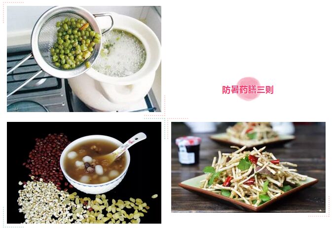 清热解暑二豆薏米粥:赤小豆、绿豆、薏米、大米适量,煮粥,冷热食用即可。