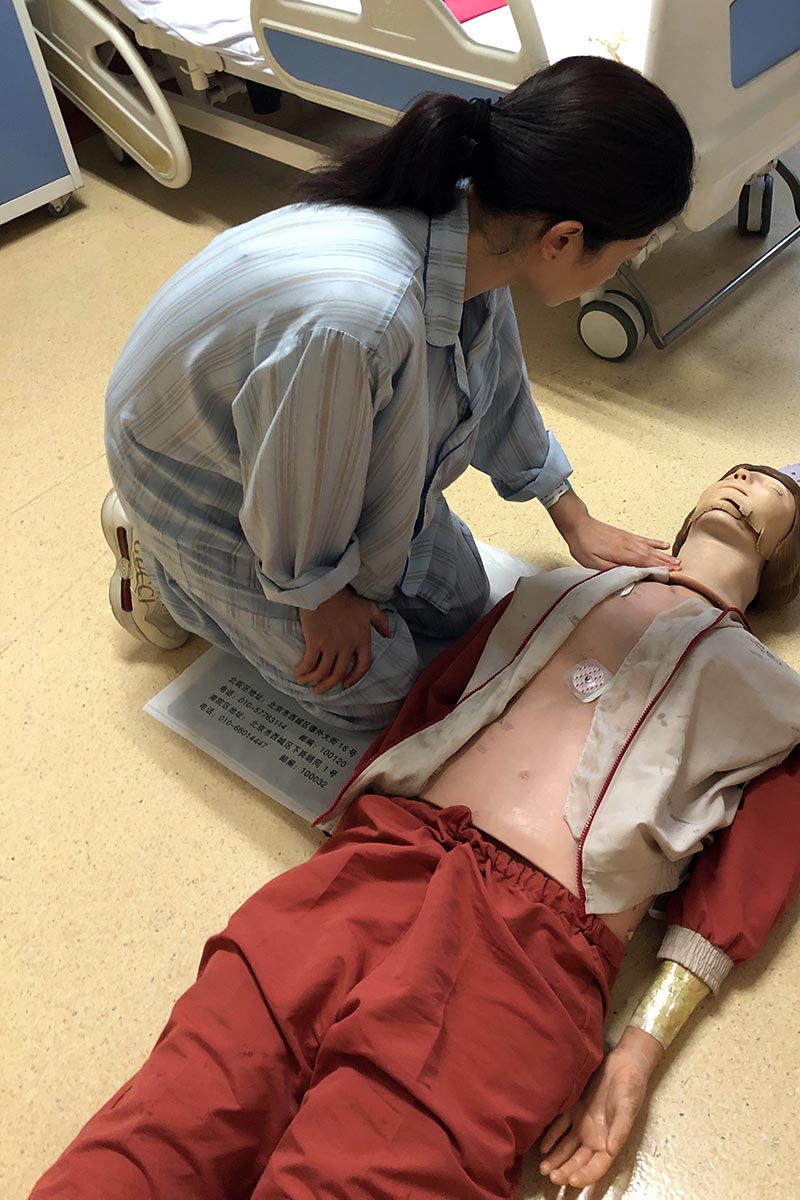 此次课程采用理论与实际操作相结合方式,更加注重实际动手能力。特需病区的护理人员结合理论授课的内容,进行现场模拟演示教学,手把手指导患者进行实际操作,及时纠正动作并给予正确的示范,在小教员的指导下,患者及家属争先恐后的排队操练起来。患者汪女士因家人有心脏病病史,对于掌握这项急救操作技能愿望迫切,为满足患者需求,活动结束后,护理人员对汪女士进行VIP式一对一教学培训,护士耐心指导如何快速、准确触摸颈动脉搏动的位置;正确观察病人呼吸的方法和要领;示范心脏按压的正确手法,不厌其烦进行讲解。