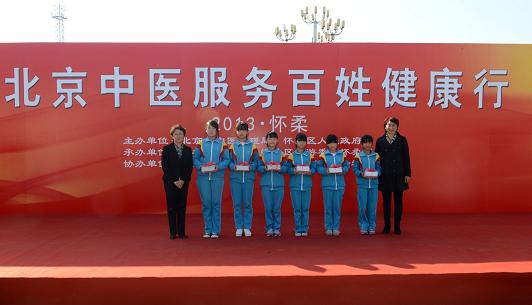 为贯彻落实卫生部、国家中医药管理局的相关要求,北京市正式启动“北京中医服务百姓健康行”活动。由北京市中医管理局、怀柔区区人民政府主办,怀柔区卫生局、怀柔区旅游委、怀柔区农委承办,北京中医药学会、北京中西医结合学会协办的“北京中医服务百姓健康行(2013?怀柔)”启动仪式于2013年10月20日在怀柔区举办。国家中医药管理局机关党委书记桑滨生、国家中医药管理局办公室副主任赵明、北京市中医管理局局长赵静、怀柔区区长常卫以及十六区县卫生局主管领导,二三级中医医院主管领导等近200人出席了启动仪式。