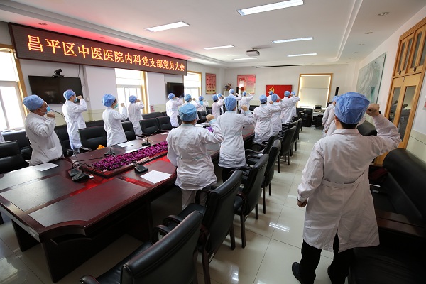 "我志愿加入中国共产党,拥护党的纲领,遵守党的章程,履行党员义务……"2020年3月7日上午9时,在鲜红的党旗下,韩晓伟同志举起右拳,在这特殊时期,光荣火线入党。