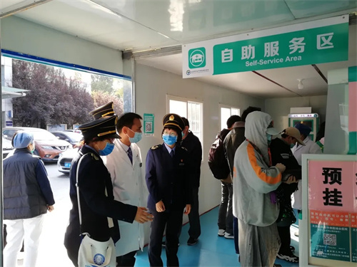 本次检查重点查看预检分诊筛查、核酸检测、自助服务区等关键环节防控措施落实,检查组一行分别前往核酸采样点、预检分诊、门诊大厅、急诊等重点区域详细了解预检分诊制度落实、一医一患就诊等情况。