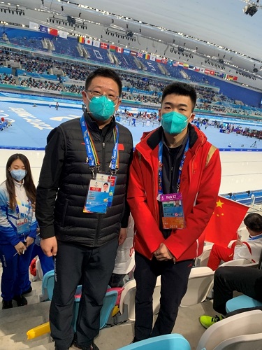 2月19日下午3:00,医疗队队员来到冰丝带国家速滑馆交流工作,近距离在比赛场馆感受了北京冬奥会的盛况,队员们在人群中看了一眼,就发现了中国国家速滑队为国争光的冬奥明星们。祖籍东北,从小也接触冰雪运动,刘佳霖主任高兴地向国家队黄志勇领队介绍了东方医院国家中医医疗队为冬奥提供的医疗保障情况,也介绍了在赛场之外,我国的中医药为冬奥会增添了亮丽的中国色彩。黄志勇领队听后很感动,带领在场的全体国家速滑队队员为东方医院院国家中医医疗队队旗签名。这中间有大家熟悉的冬奥冠军和冬奥明星:高亭宇、廉子文、徐富、杨涛、韩梅、金京珠、殷琦、阿合娜尔·阿达克、田芮宁、裴冲、队医何本祥等。大家怀着激动的心情向中国速滑队送上真挚的祝福。
