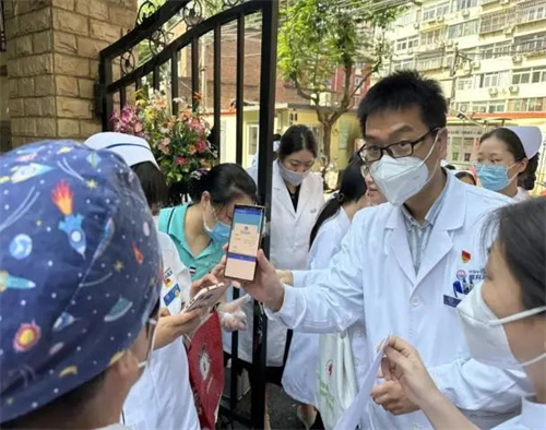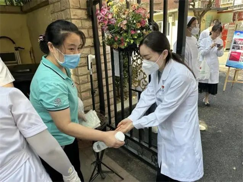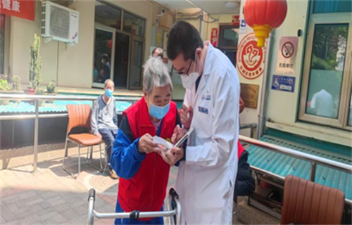 针对近期疫情防控形势,为保障院里老年人的健康安全,义诊团队认真做好“京养老通”扫码登记、抗原测试、体温监测、更换N95口罩、全身消毒等,确保一切正常后再进入养老院。