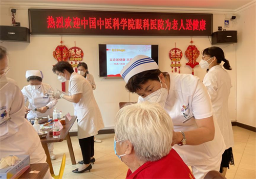 5月24日上午,为深入学习贯彻党的二十大精神,发挥中医药在健康促进中的独特作用,弘扬中华民族尊老敬老的美德,中国中医科学院眼科医院护理综合党支部与党建综合党支部联合东直门党群服务中心党委共同走进东直门养老院,组织开展以“健康中国歧黄行动-中医护理行,科普进万家”为主题的大型义诊活动。眼科医院副院长李静、纪委书记闫飞雪带队,眼科、内科、骨科、护理等医务人员25人参加此次活动。